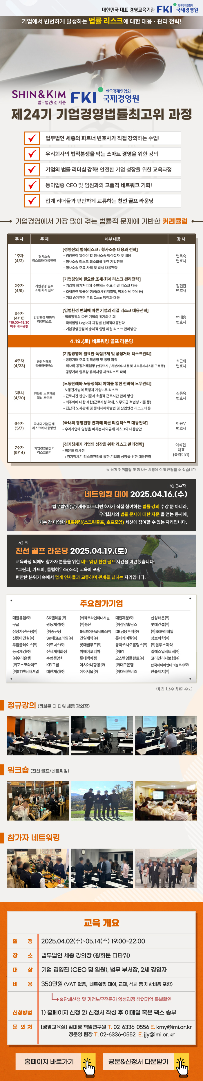 일반사 : 350만원 (교재, 식사, 네크워킹, 골프 등 제반비용 포함) |