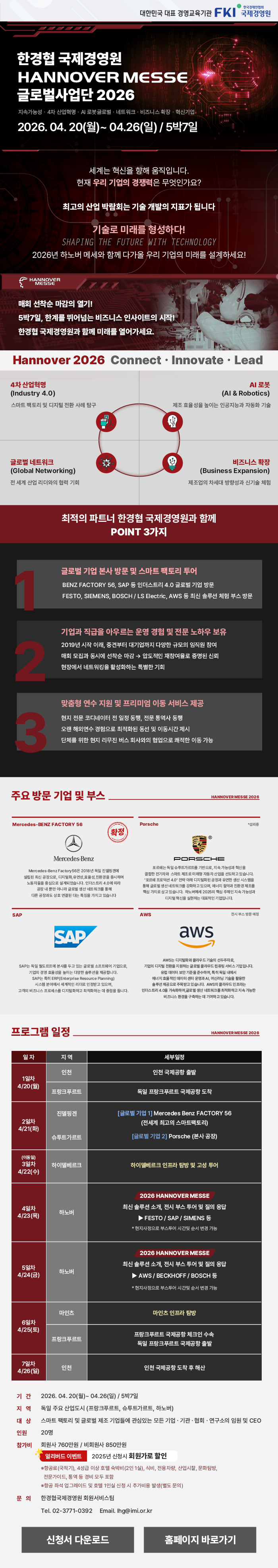 지금, 한경협 하노버메세 글로벌사업단에 참여해 글로벌 시장에서의 경쟁 우위를 확보하세요!